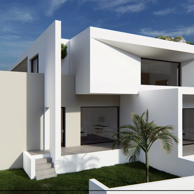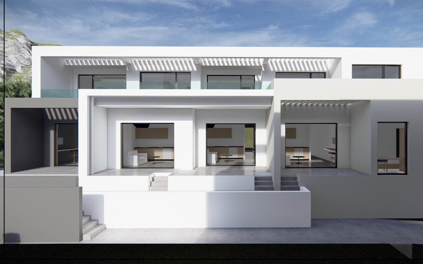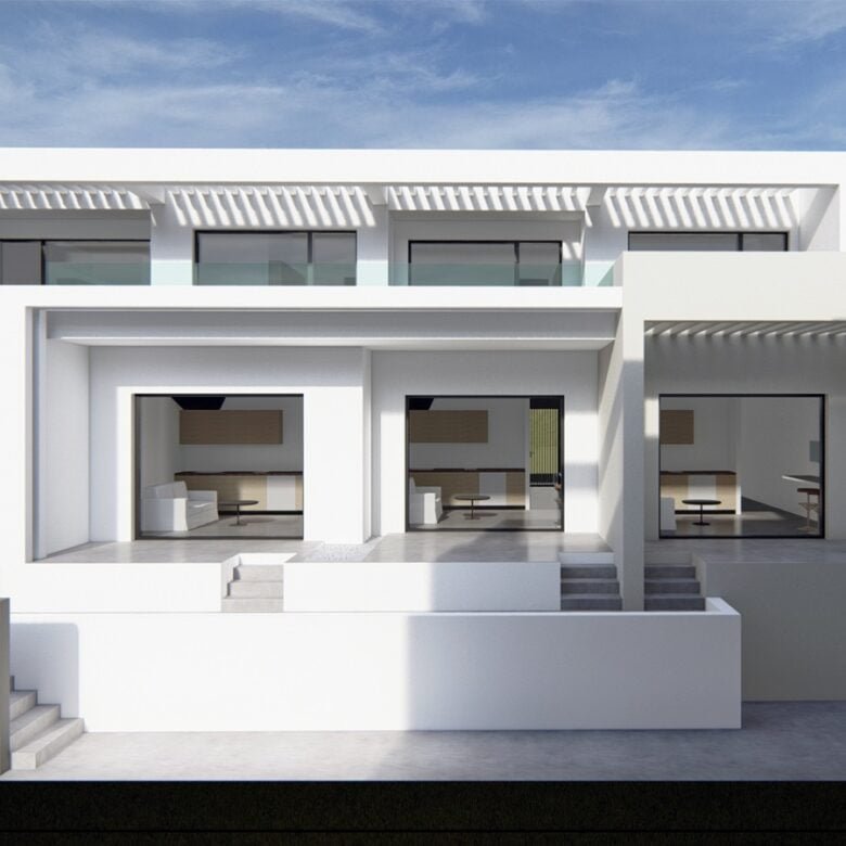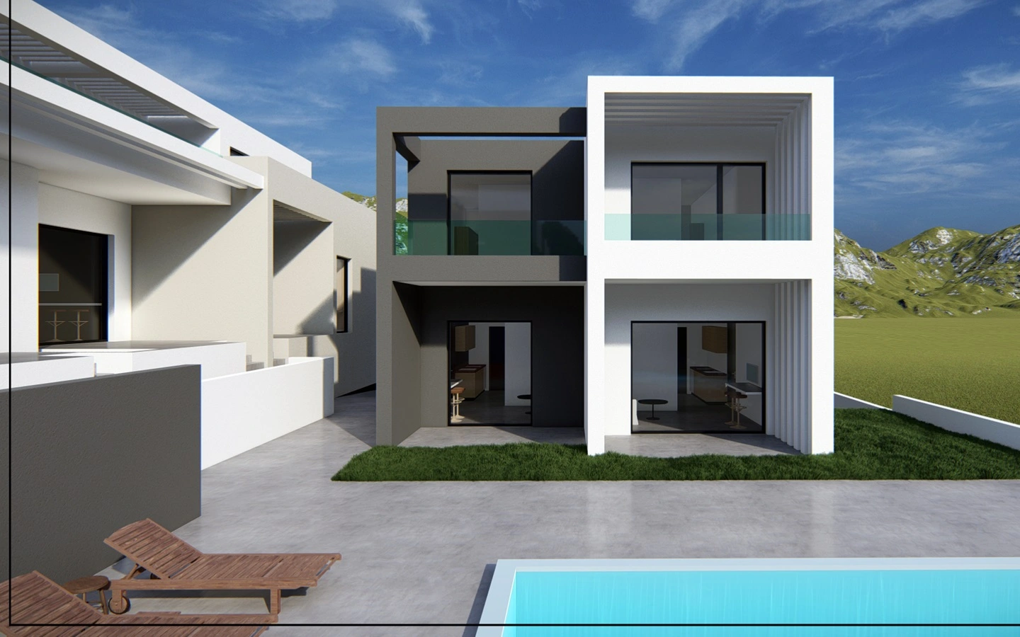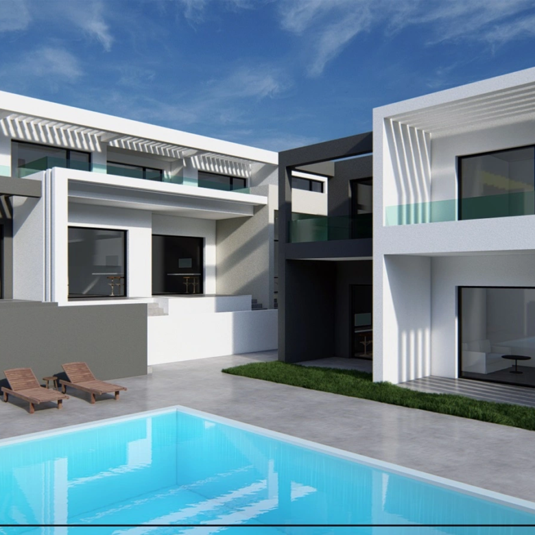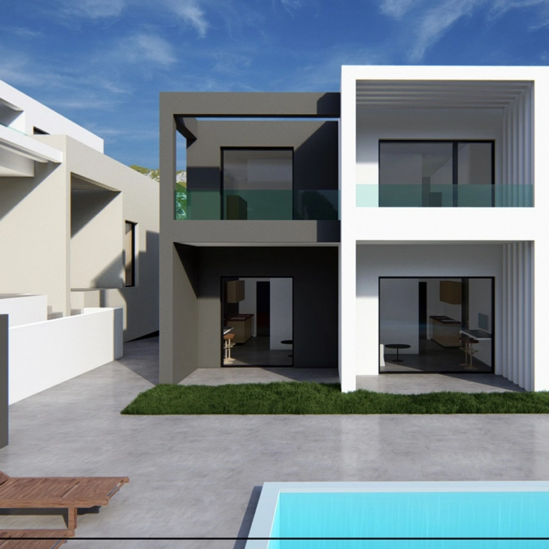 Όλες αποτελούνται από 2 υπνοδωμάτια, σαλονοκουζίνα, 2 μπάνια και σοφίτα που συνδέεται με εσωτερική σκάλα. Υπάρχει κοινόχρηστος κήπος με πισίνα 294,85τμ.