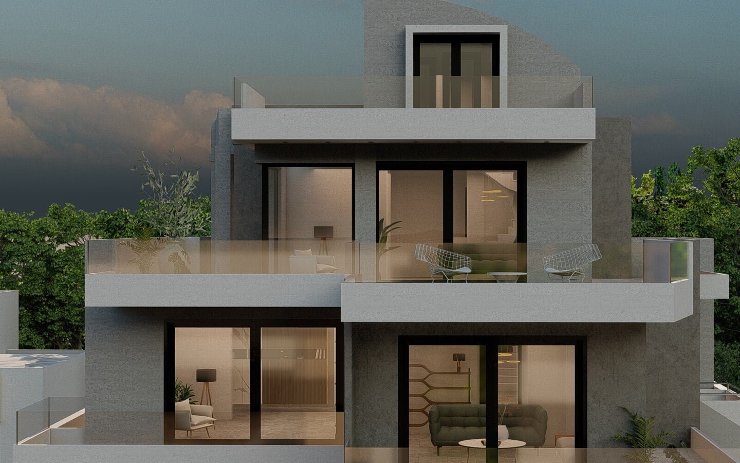 Όλα τα διαμερίσματα και η μεζονέτα διαθέτουν αυτόνομη θέρμανση αντλία θερμότητας, δάπεδο από πλακάκι, κουφώματα αλουμινίου με διπλά τζάμια, σίτες, ηλιακό θερμοσίφωνα. Υπάρχει ανελκυστήρας, κοινόχρηστος κήπος και πρόσβαση για ΑΜΕΑ.